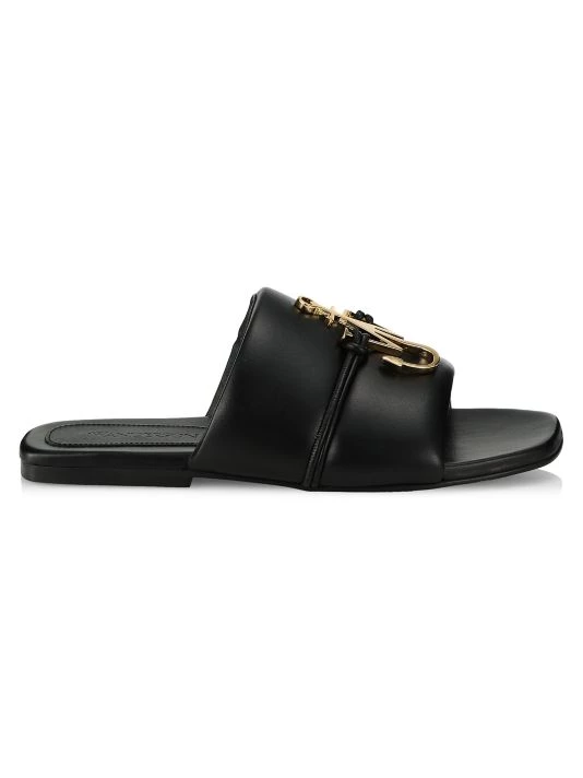 JW Anderson’s leather slides are finished with an anchor logo plaque on the vamp.