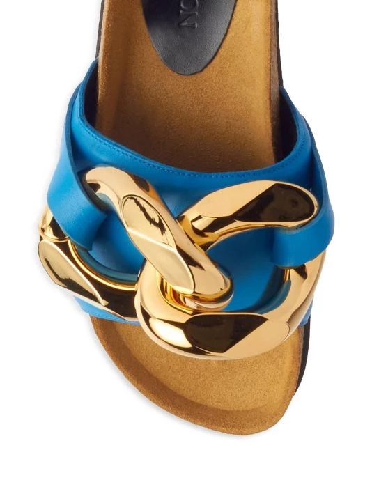 Made in Spain of rich leather, JW Anderson’s slides are highlighted with oversized polished chains-links. This pair is set on a molded cork footbed.