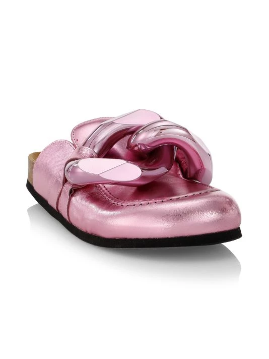 Made in Italy, JW Anderson’s loafers are crafted of eye-catching metallic leather. A matching oversized chain strap tops this statement-making pair.