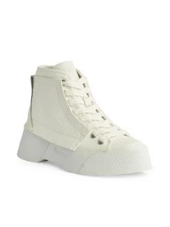 Drawing inspiration from the youthful and eclectic energy of Gen Z, this collection from JW Anderson explores a range of textures and curated chaos in the form of flashy prints and patterns. Oversized strawberry motifs, exaggerated floral designs, and bold logo wear in vibrant palettes are the result of a creative process that Anderson describes as a sort of ode to the label’s inception. Mariniére-style striping covers this ribbed zip-up sweater, knit from soft merino wool with an embroidered logo at the chest.