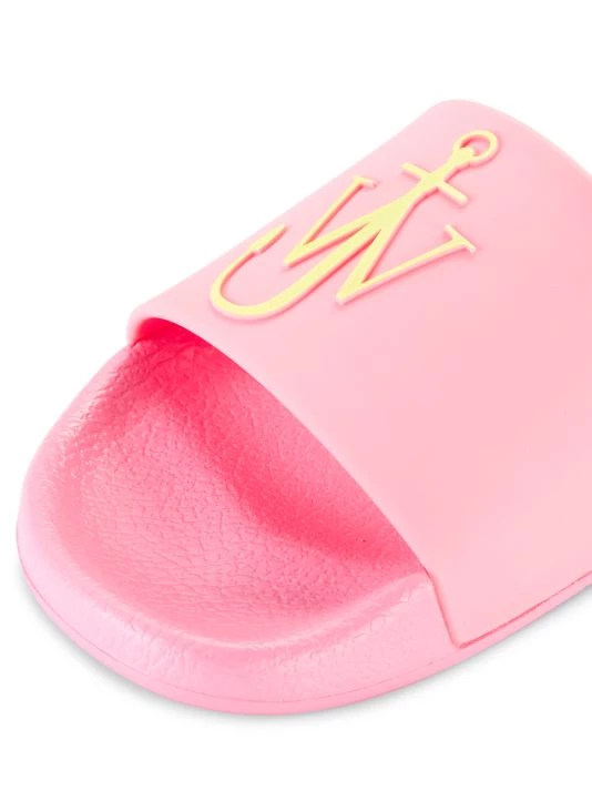 JW Anderson’s pool slides are highlighted with the polished logo hardware. This pair is finished with a molded footbed for all-day comfort.