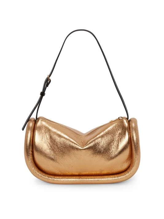 JW Anderson’s Bumper bag is crafted of metallic leather with a padded border.