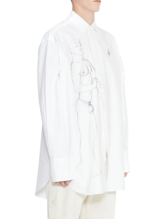 From the JW Anderson x Tom of Finland collaboration. JW Anderson’s third installation of the limited-edition capsule celebrates Tom of Finland’s detailed erotic art illustrations and imagery depicting postwar gay culture. This collection of T-shirts, bags and small accessories showcases archival work from the Tom of Finland Foundation, established to preserve the artist’s vast catalog while promoting healthy and positive attitudes towards sexuality.Crafted of cotton, this oversized button-front shirt is adorned with an intricate artwork motif on the face. A signature JW Anderson monogram is embroidered on the left chest.