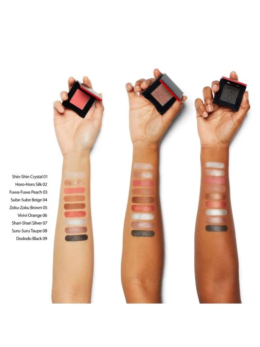 Bold, blendable, long-lasting eyeshadow. This weightlessl formula applies evenly, offers superior blendability and delivers waterproof and crease-resistant color for long-lasting eye looks. Available in three finishes matte, shimmer, and sparkle. The 18 shades are inspired by the vibrant colors found in Japanese graphic art. Each color is named after an expressive sound, emotion, or action, expressed as onomatopoeia in the Japanese language. Dermatologist and ophthalmologist-tested. 0.07 oz. Made in USA.